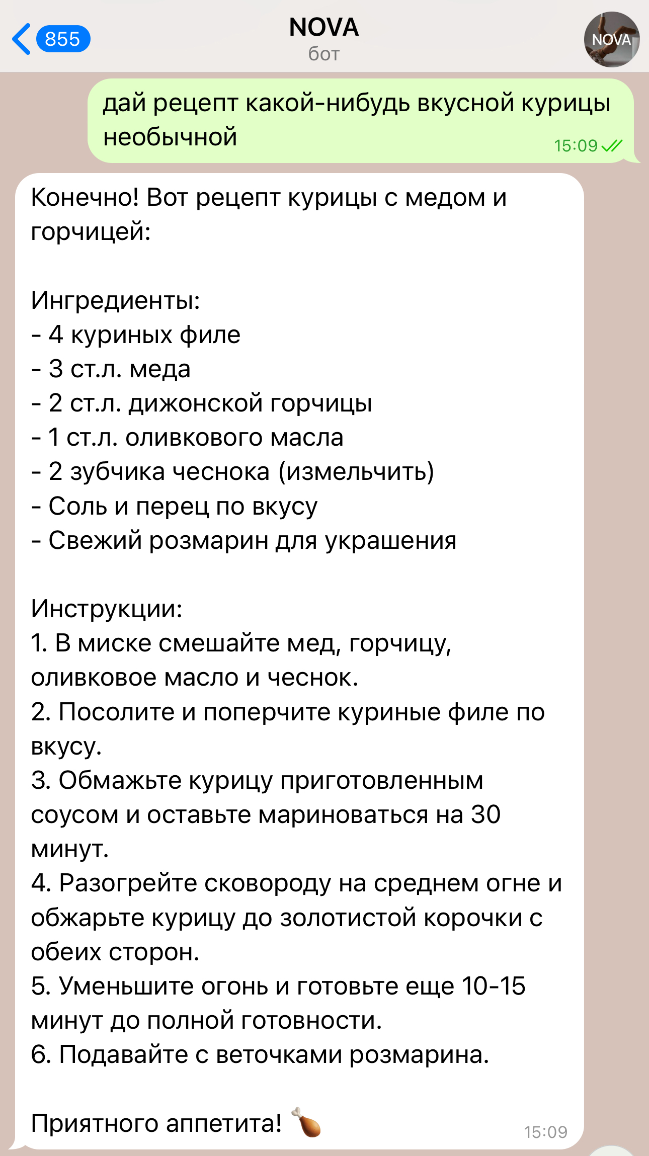 Во вторых, NOVA выступает в роли виртуального нутрициолога, которому можно задавать вопросы о питании и спрашивать советы))